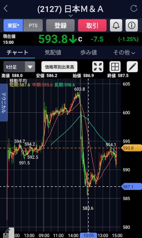 SBI証券では単元株を取引き、明日はこの辺の価格で買いたい!